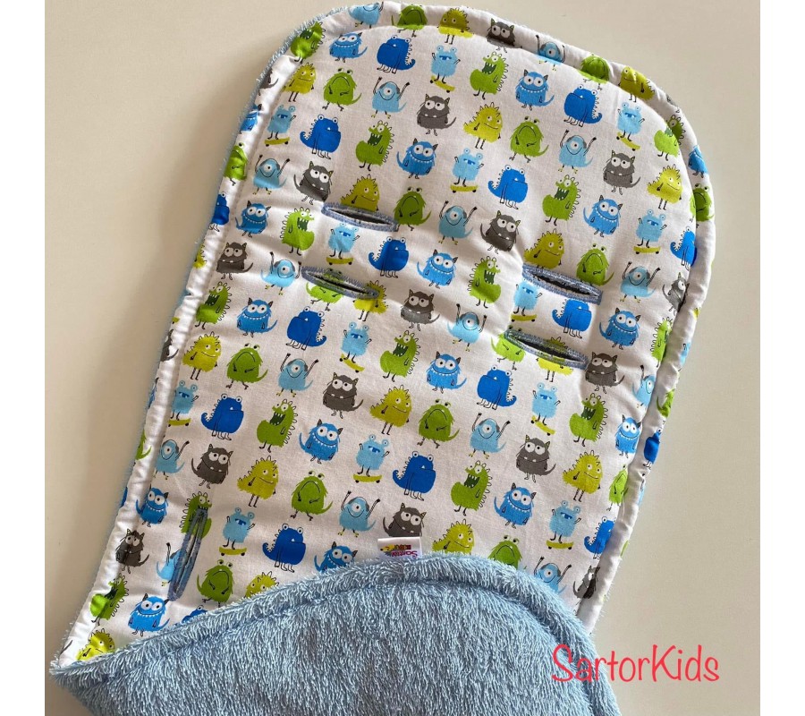 Mekana i prozračna pamučna podloga za kolica u dva dezena, idealna je podloga za malenu glavicu i leđa, i ljeti i zimi. Podloga je univerzalnih dimenzija te odgovara gotovo svim modelima kolica.