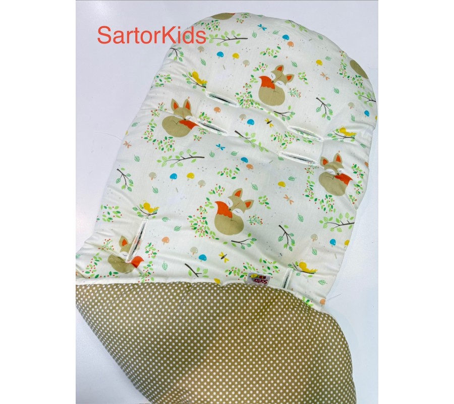 Mekana i prozračna pamučna podloga za kolica u dva dezena, idealna je podloga za malenu glavicu i leđa, i ljeti i zimi. Podloga je univerzalnih dimenzija te odgovara gotovo svim modelima kolica.